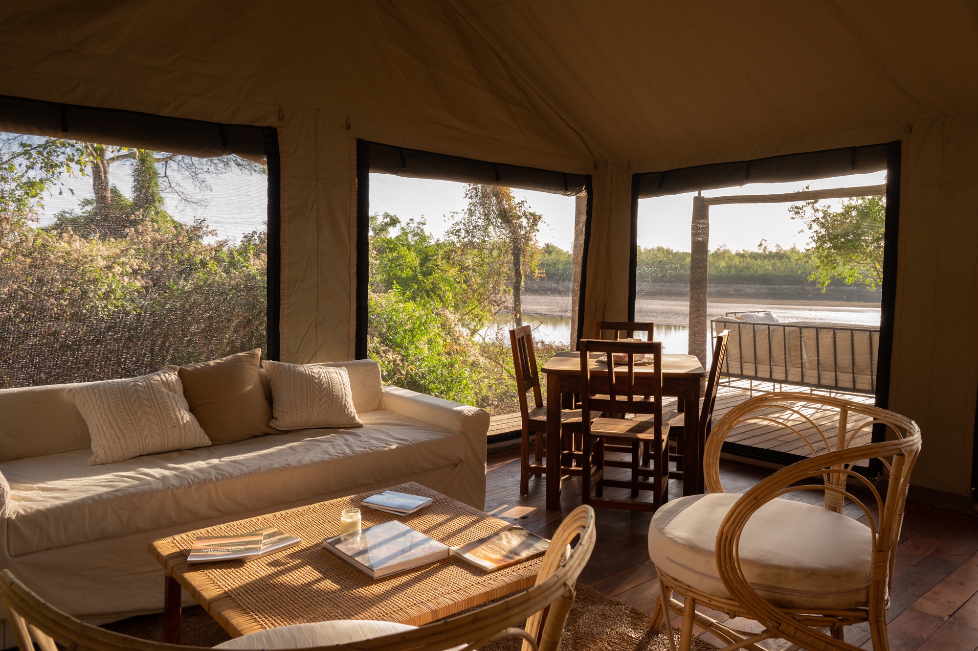 Tot voor kort was dit gebied zo goed als ontoegankelijk voor reizigers. Vandaag ontdek je het langzaam, langs de rivier en door het bos, per kajak, te voet of met een kleine boot. Tussen de activiteiten door keer je terug naar het comfort van het kamp. Vanaf het houten dek overschouw je de rivier en praat je na over wat je vandaag allemaal zag.